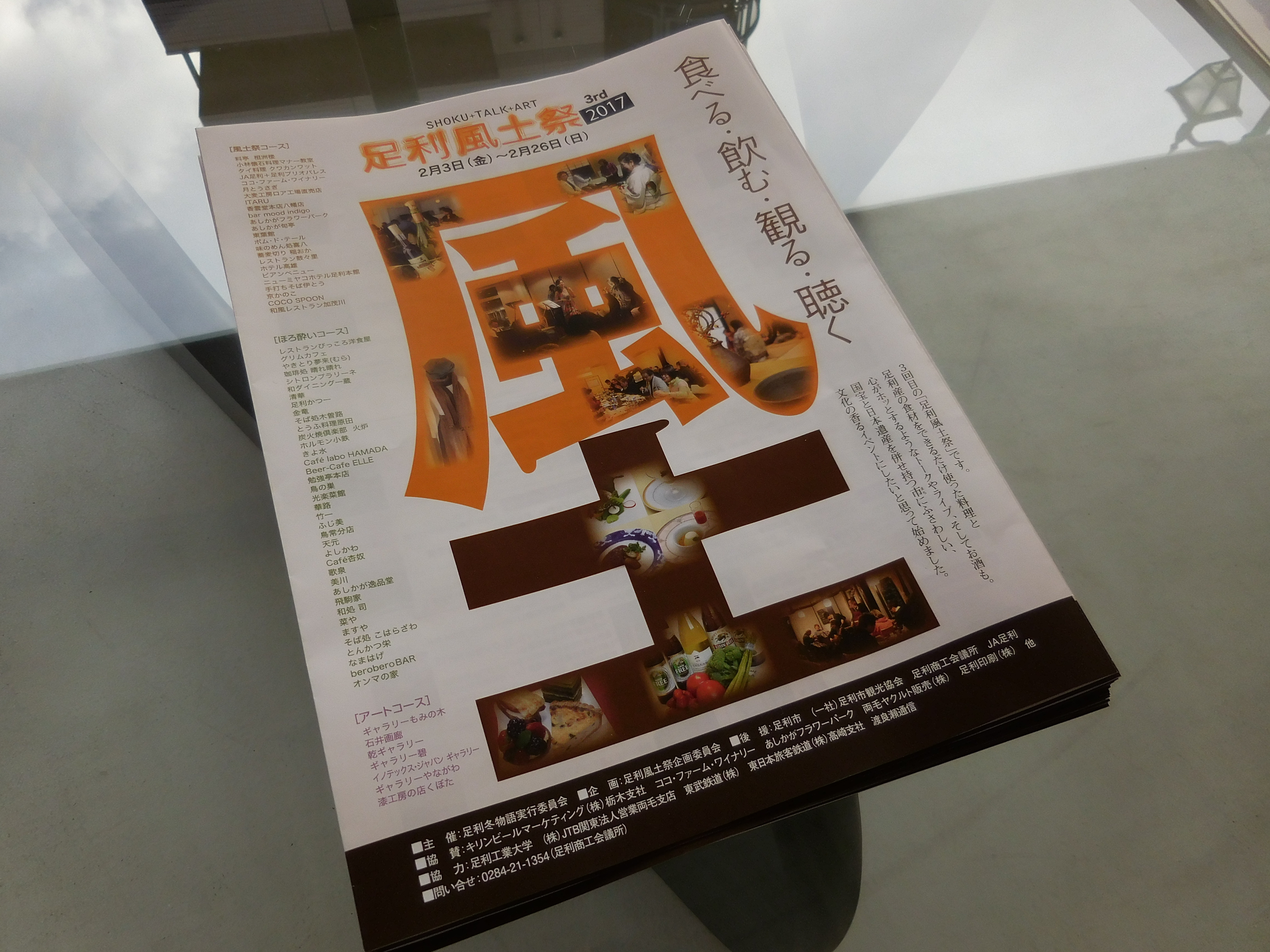 足利 風土祭 投稿日: 2017年1月15日 投稿者: gheki 先日、足利 風土祭のフライヤーが届きお店にも設置いたしました。 寒いからこそ、縮こまらずに外へ出かけましょう!ギャラリー碧では2月2日の節分より、地元の作家作品を展示いたします。